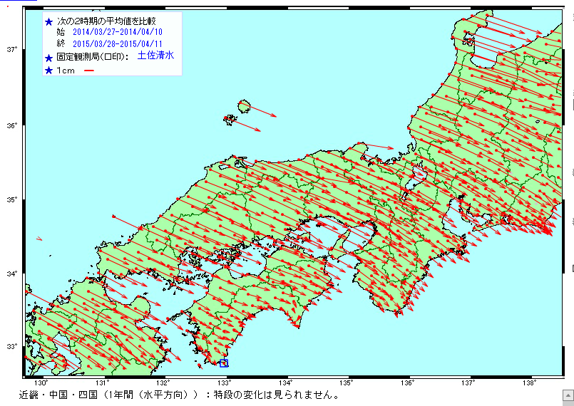 この結果,東海地方 の駿河 トラフ,糸魚川一静岡構 造線,男鹿一牡鹿構造線及び九州の別府ー島原地溝周辺の特徴的な地殼変動が明らかにされた。」