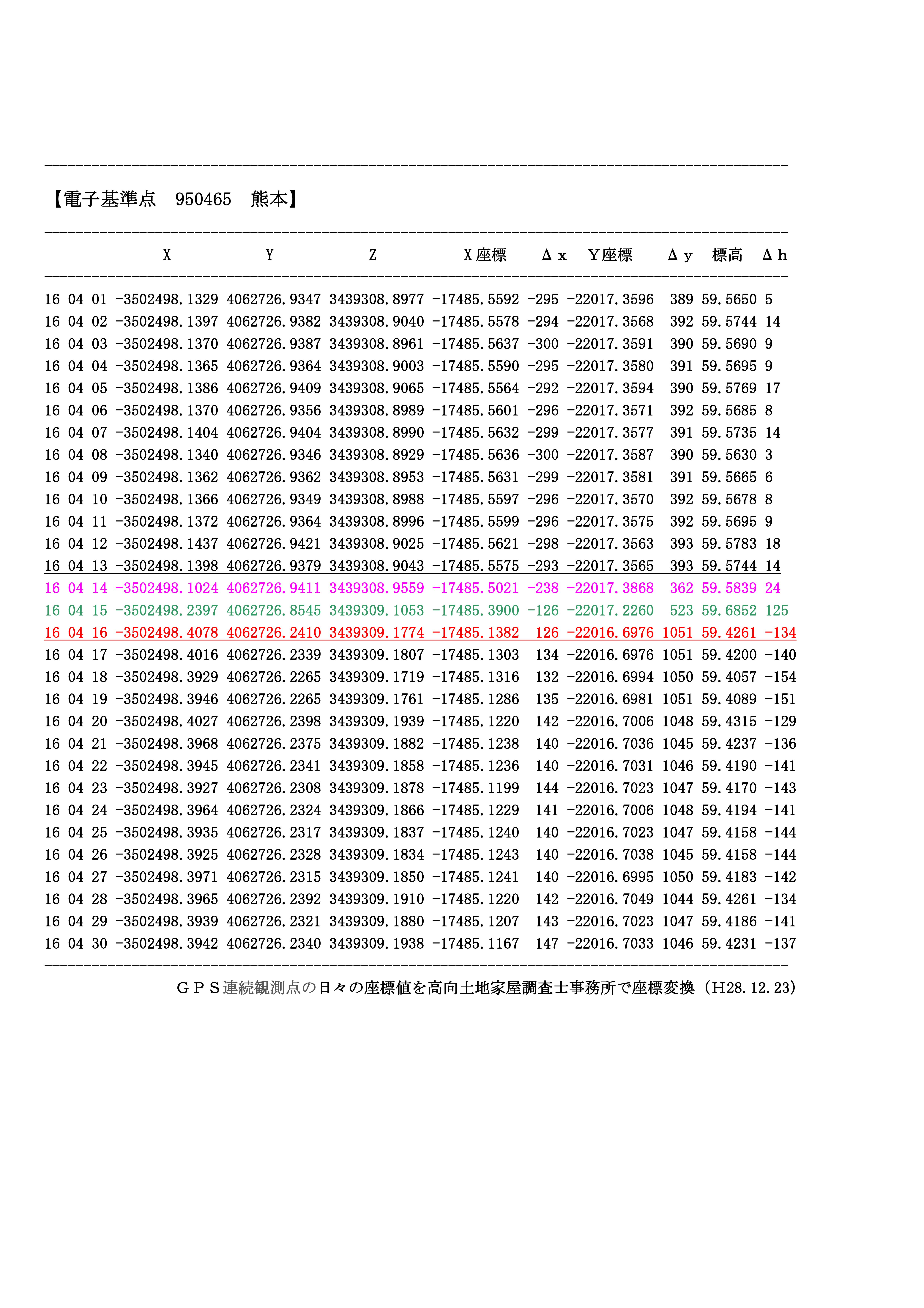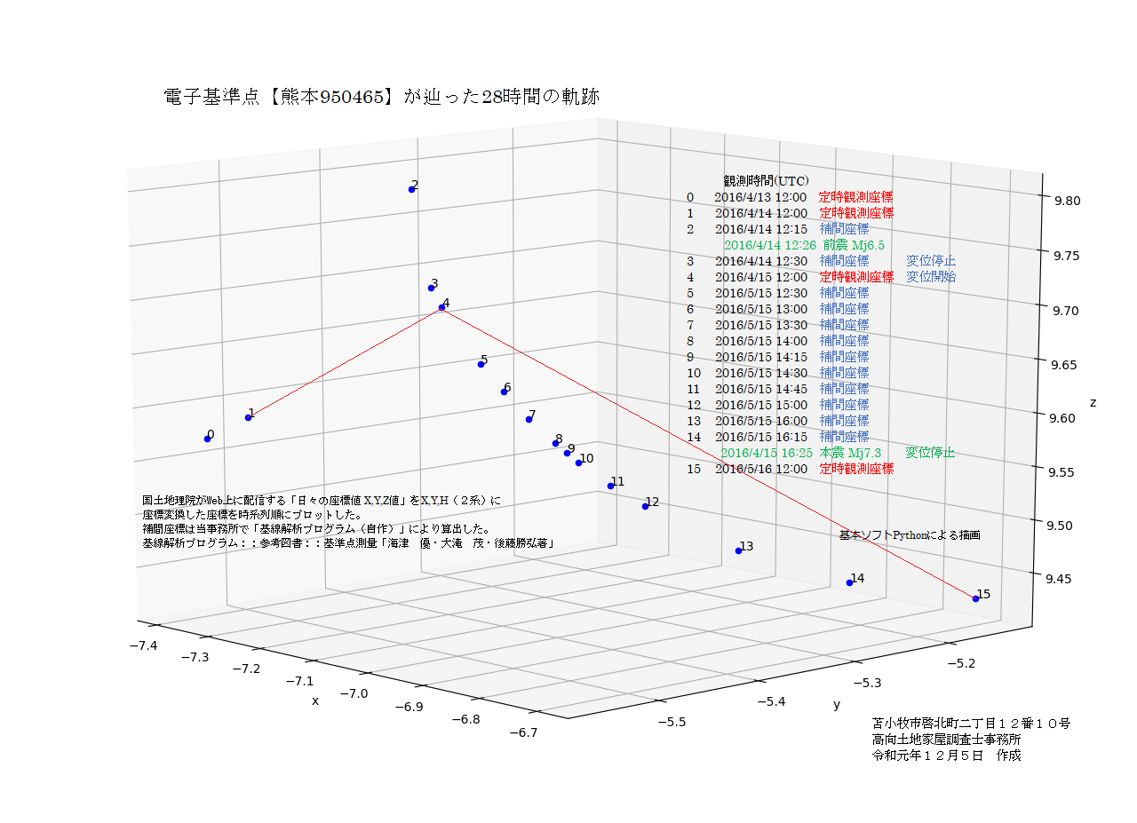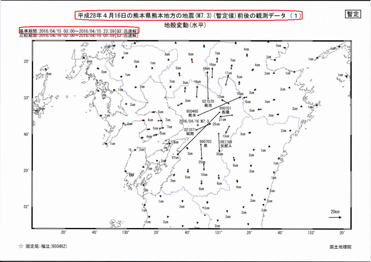 特に、「電子基準点【熊本950465】が辿った28時間の軌跡」の